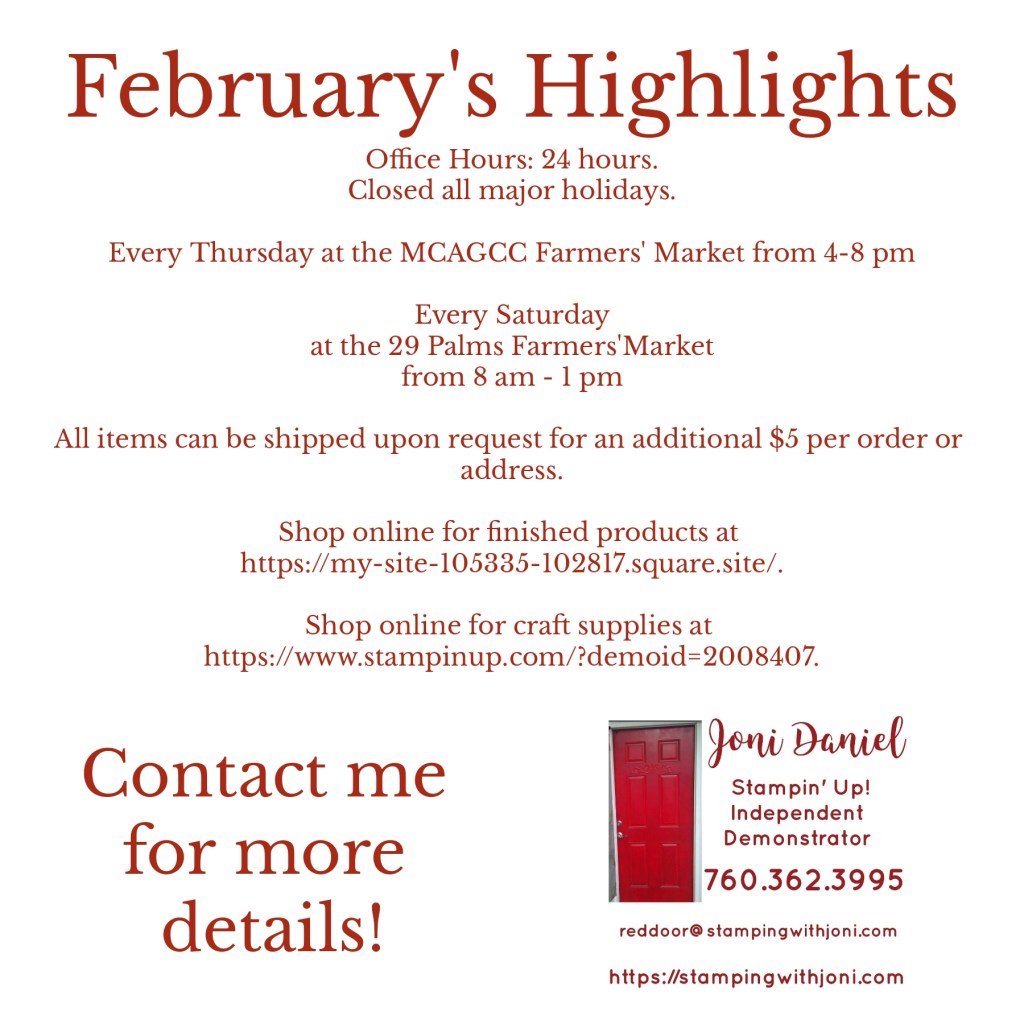 Just a quick reminder that tonight is the last time this Product of the Month will be offered! Tomorrow the new one for February will be announced! To get this stamp set please go to https://www.stampinup.com/?demoid=2008407 to order.