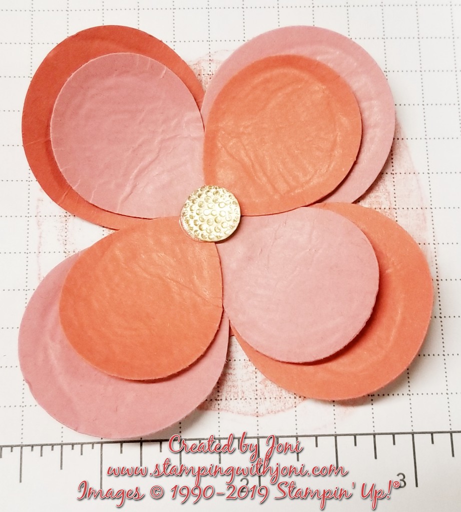 It’s Tutorial Thursday! Do you know that you can create a flower from the balloons? Punch a bunch of the balloons out of the Balloon Bouquet punch. Take one of the larger balloons and trim to create a circle for a base to glue everything to. Do not worry if it is not perfectly circular. Tip: You may want to dot the center of the circle with a pen.