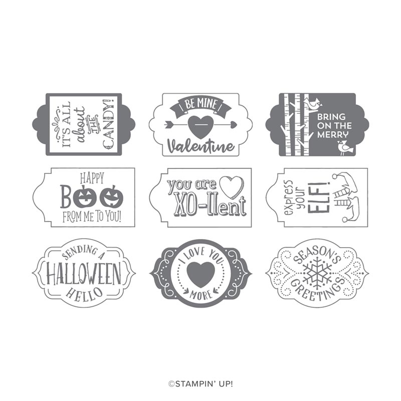 If you create a card and post it on the 8 am post on the page (http://facebook.com/StampingWithJoni) you will be entered into the raffle to win the set Tags Tags Tags!