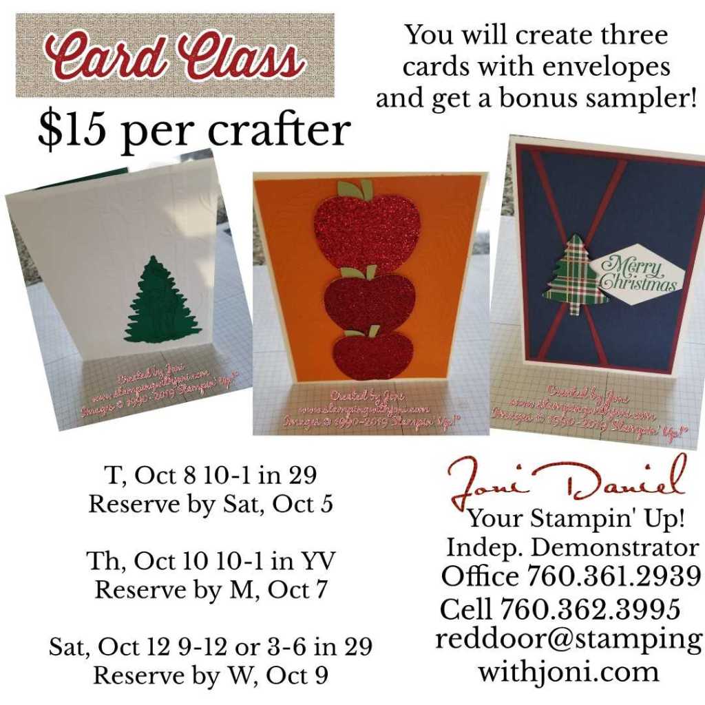 Card Class starts tomorrow. There is still room on Thursday and Saturday. Let me know that you are coming.