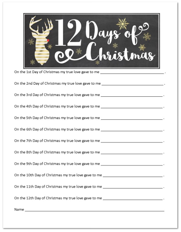 If you are not able to attend but want a chance to play you can!!! Fill in the 12 Days of Christmas without googling or cheating. For every form completely filled out you will get one ticket. For every right answer you will get a ticket. So you have a chance to get 13 tickets.