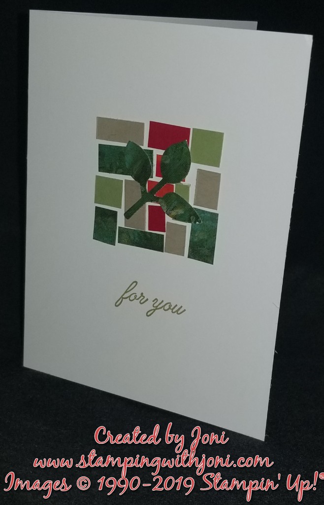 It’s Technique Tuesday! Today’s technique is rather easy but I don’t know if you have thought of it. Take your scraps and create a focal point or accent. To create a shape use washi tape or a die to create a stencil. All you need is a good pair of scissors and a box of glue dots and you are off to the races.