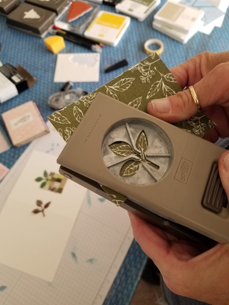 Yesterday during Card Class Shawnie helped me to see that the Magnolia Designer Series Paper somewhat lines up with the Leaf Punch.