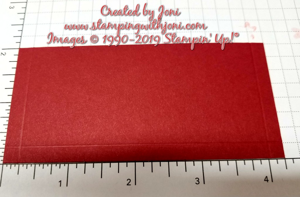 Cut the card stock to 2″ X 4 1/4″. Score 1/4″ in from three of the four edges.