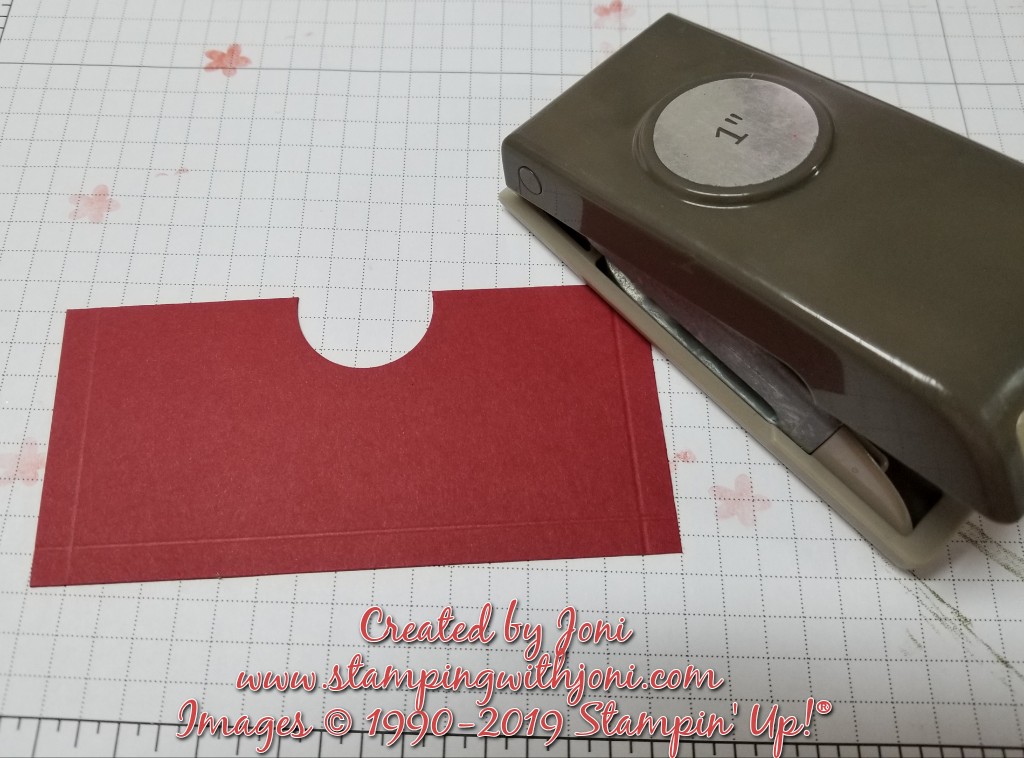 Then take your 1″ circle punch and punch a semi circle notch so it is easy to pull the card out.
