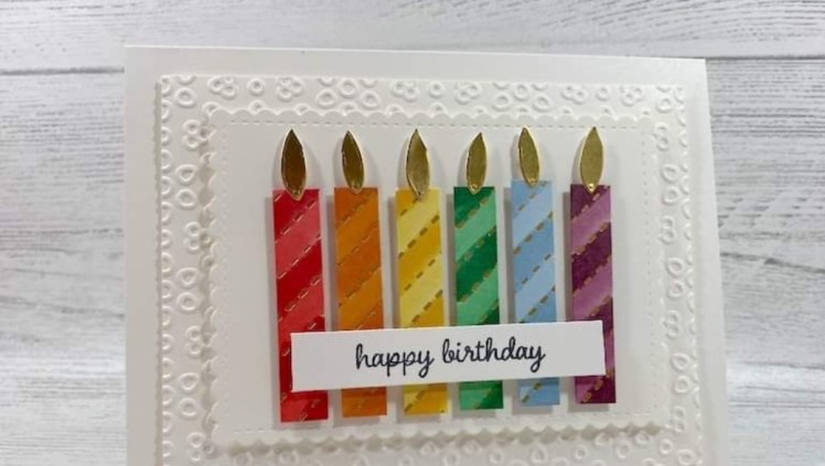 It’s Technique Tuesday! If you have a piece of Designer Series Paper that is not your favorite then here is what you do. Cut it in to small pieces to create candles for a card. Then color with the markers or use the blender pen.