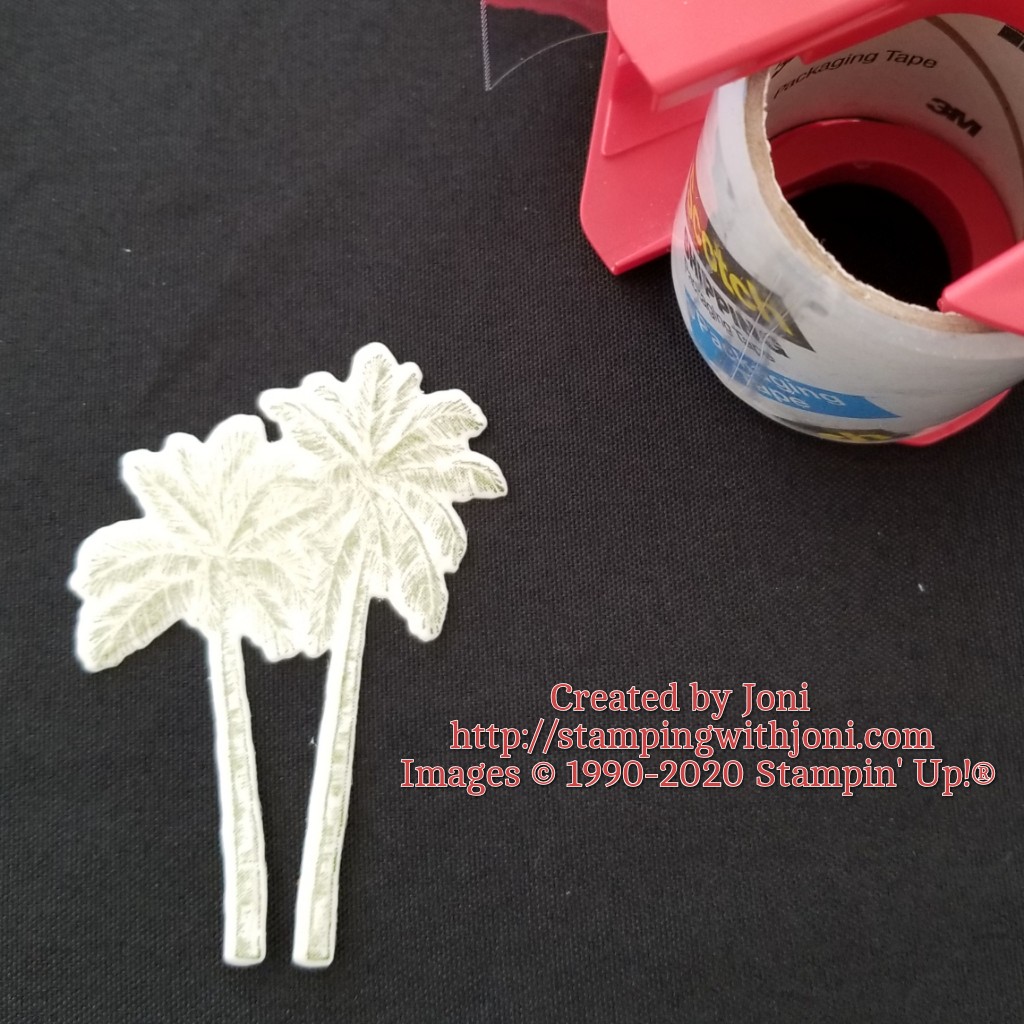 Have you ever wanted to have the look of embossing and didn’t have your heat tool or the right color of embossing powder? Then use tape. Stamp the image as normal and then cover with tape. After covering with tape then die cut and place on your card.