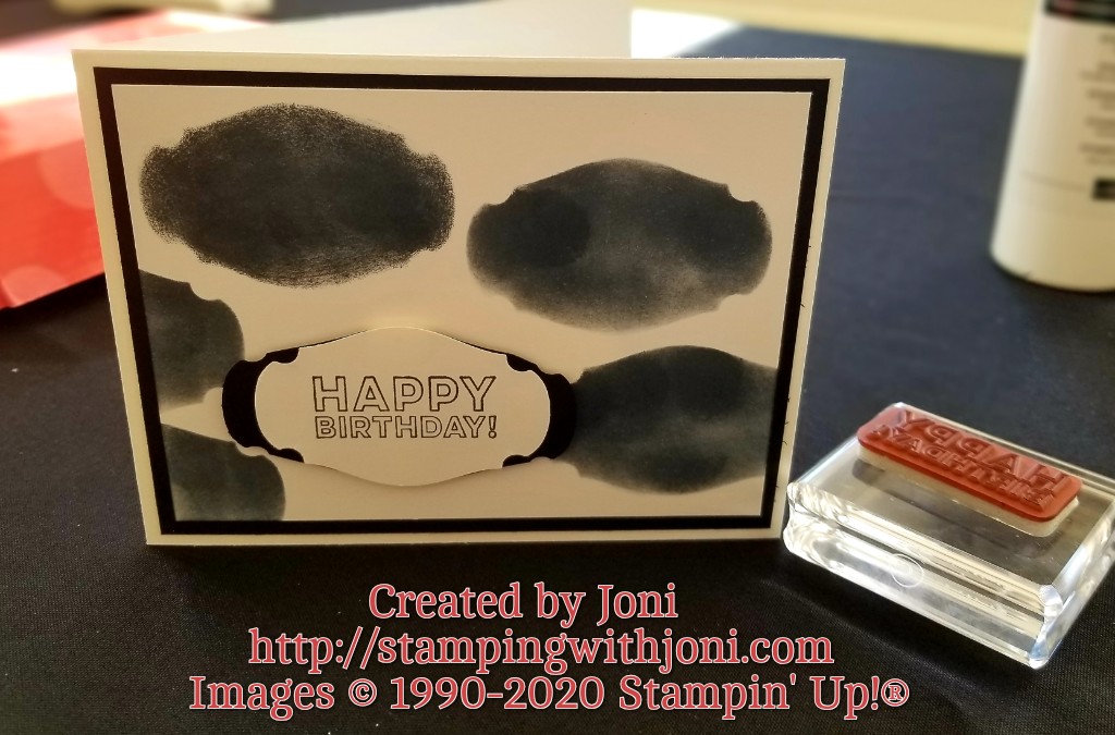 For this card you will need a card base, mat, inner mat, punch, stamps, ink, and adhesive. Take your mat and punch a hole or several to create a stencil for a background. Remember that this will still be used as a mat so don’t get too close to the edge. Then you will sponge on to your inner mat with a q-tip, sponge, or dauber.