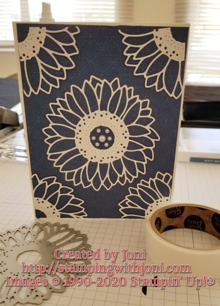 For this specific background Misty Moonlight Card Stock was used along with the Sunflowers Dies in Whisper White and the Tasteful Textiles 3D Embossing Folder.