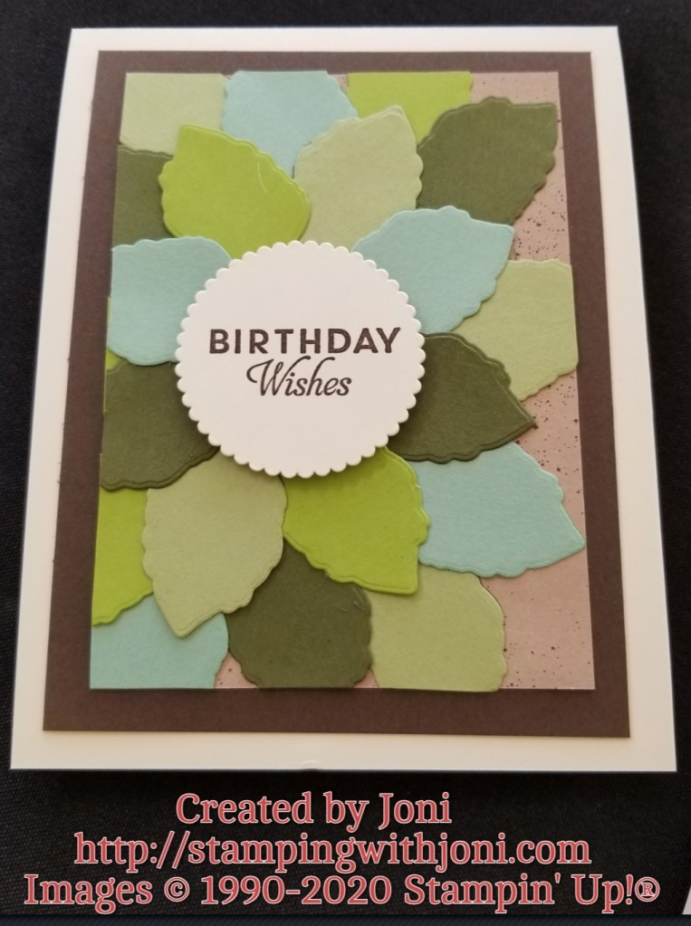 This is a great way to get rid of your scraps. You will need a bunch of scraps from a color family, all different colors, or all different Designer Series Papers. It’s pretty much what you want. For my sample I used four different greens…Mint Macaron, Granny Apple Green, Mossy Meadow, and Pear Pizzazz.