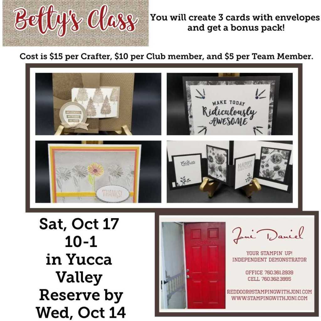 Betty’s Class is coming up on Saturday from 10-1! Thank you to all that have already signed up. If you have not told me you are coming then please do so. We are now full but have a waiting list.