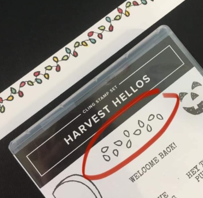 Grab a piece of Whisper White Card Stock and stamp with Tuxedo Black Memento Ink your seeds. Then take a Basic Black Stampin’ Write Marker and create your string of lights by drawing a line between the seeds. Next are the Stampin’ Blends to color the lights. Now you have a string of lights instead of just some seeds.