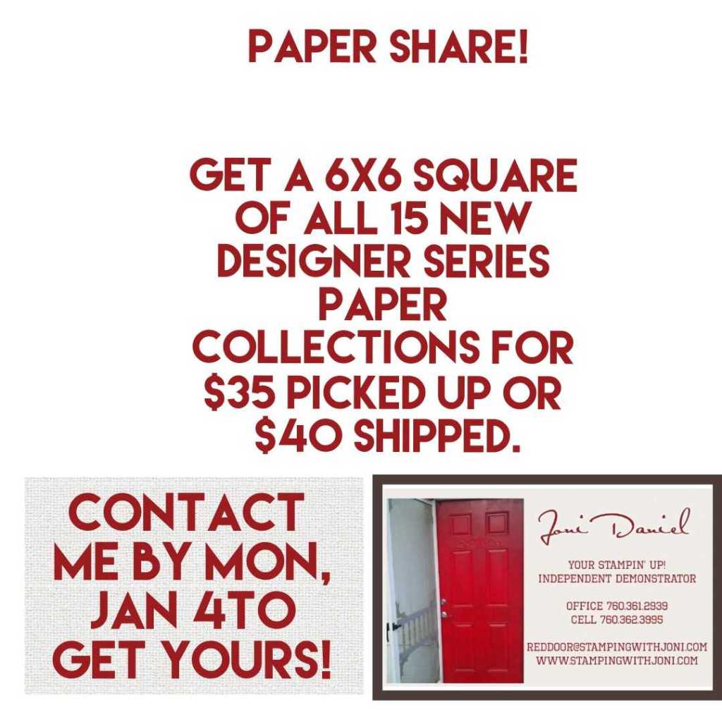 If you would like to order online please use the link https://www.stampinup.com?hostcode=BGW7KJ3B before tonight at 7:30 pm. If you prefer to order in person please contact me. I am closed for Open Day but will be responding to messages, emails, texts, and calls.