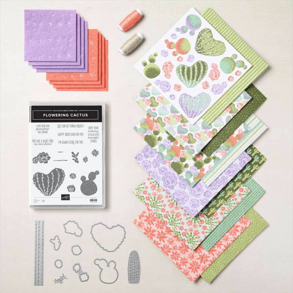 Here is the Flowering Cactus Product Medley. This would almost be considered an inclusive kit since it has materials to create 40+ cards. You don’t need the stamps and dies this time, but you do still need the ink, adhesive, card bases, and envelopes.