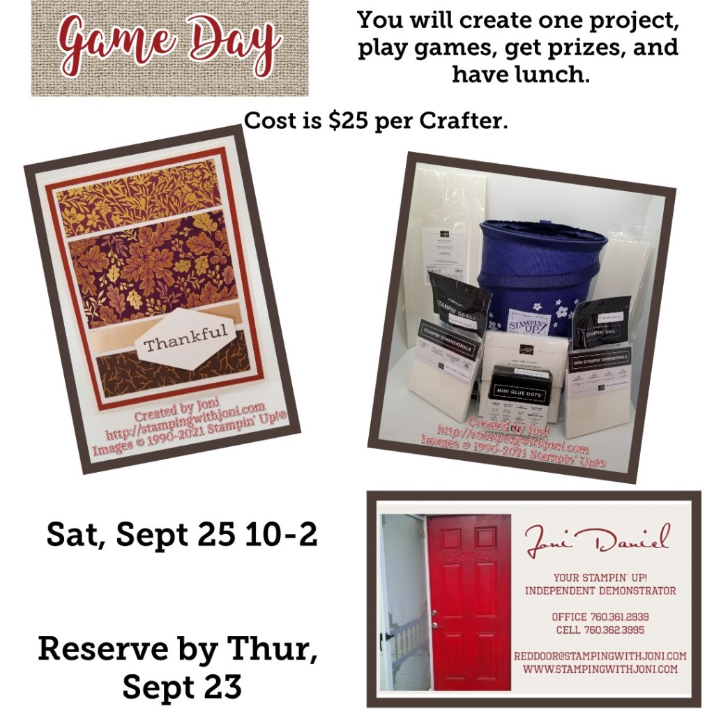 If you would like to create this card, play games, win prizes, and have lunch then plan on coming on Saturday.