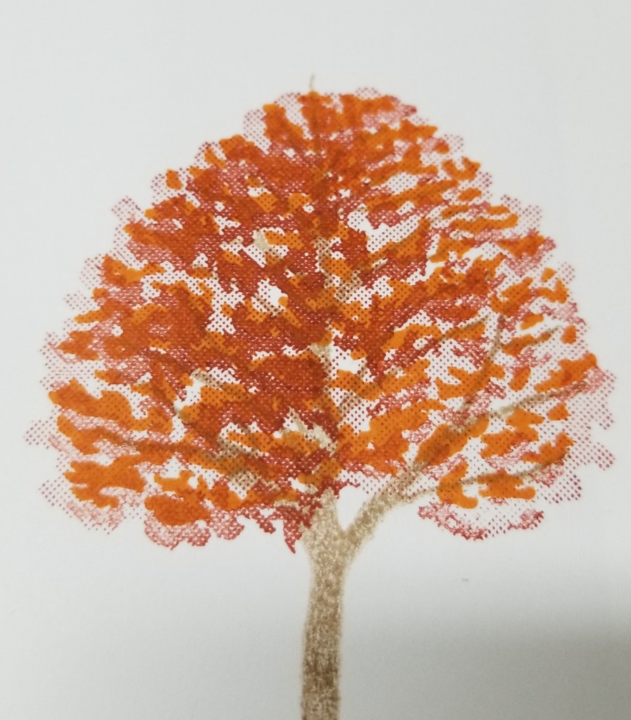 First you will need the Beauty of Friendship Photpolymer Stamp Set. (Make sure your two tree tops are different. I had a defective set where they were both the same.) Then you will need three colors…one for the trunk and two for the changing autumn leaves. For the sample Pumpkin Pie and Cajun Craze Inks were used.