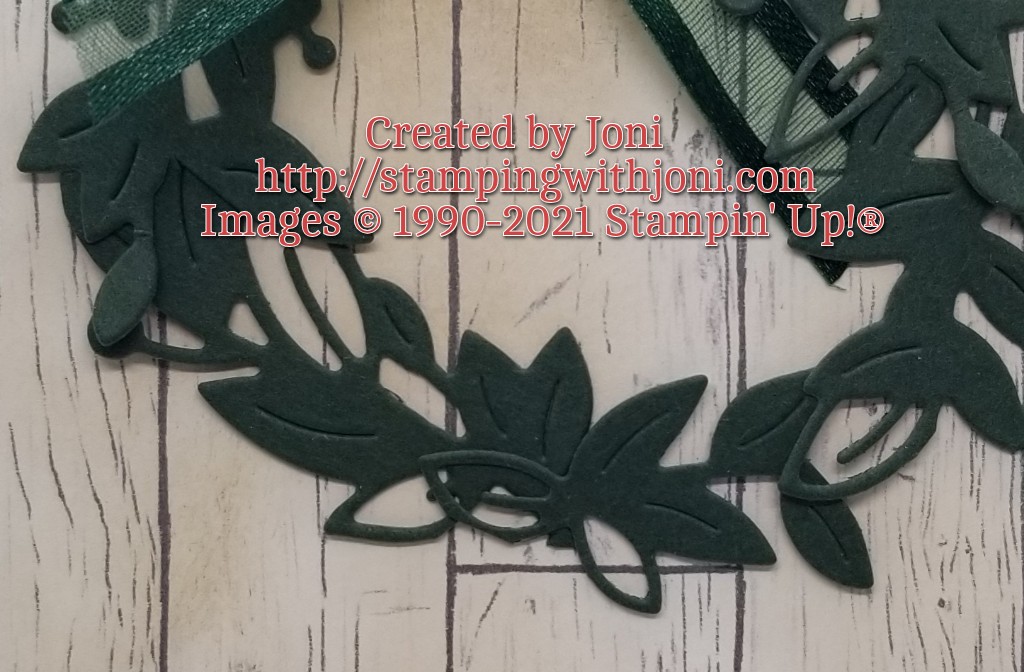 Today I want to show you a square frame of leaves from the Eden’s Dies becomes a circular wreath. I simply cut out a square frame and then take my Snips to create pieces or boughs that become a wreath.