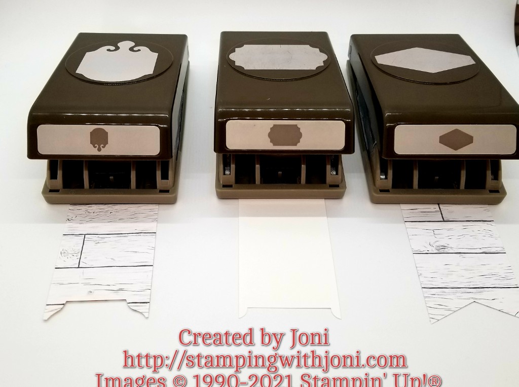 Did you know that you can use just the side, bottom, or top of a punch? In this case I used the Elegant Punch, Everyday Label Punch, and Tailored Tag Punch to create different ends to my paper. The Tailored Tag Punch can do double duty as it is similar in shape to the retired Triple Banner Punch.