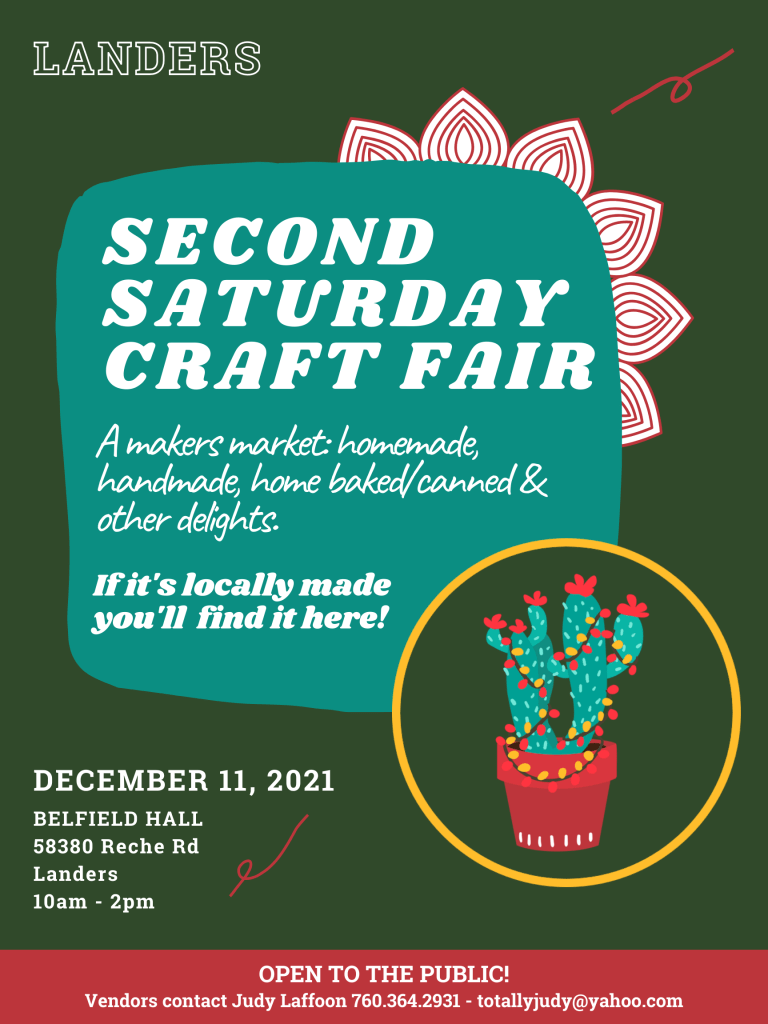 The Landers’ Second Saturday Craft Fair is this Saturday, December 11! Join me and catch some great deals!
