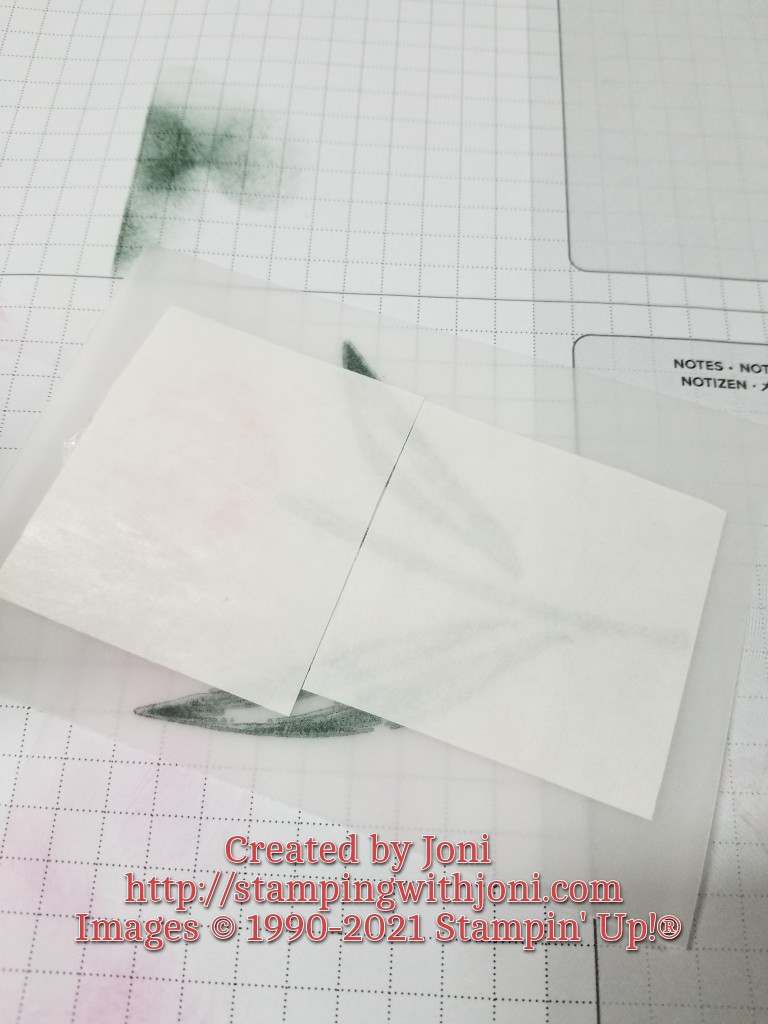 Take a piece of Vellum and stamp, emboss, whatever on it. When you are done and want to adhere it to your project then use the Adhesive Sheets. You can barely see them. It’s amazing. Just remember to peel again so they stick.