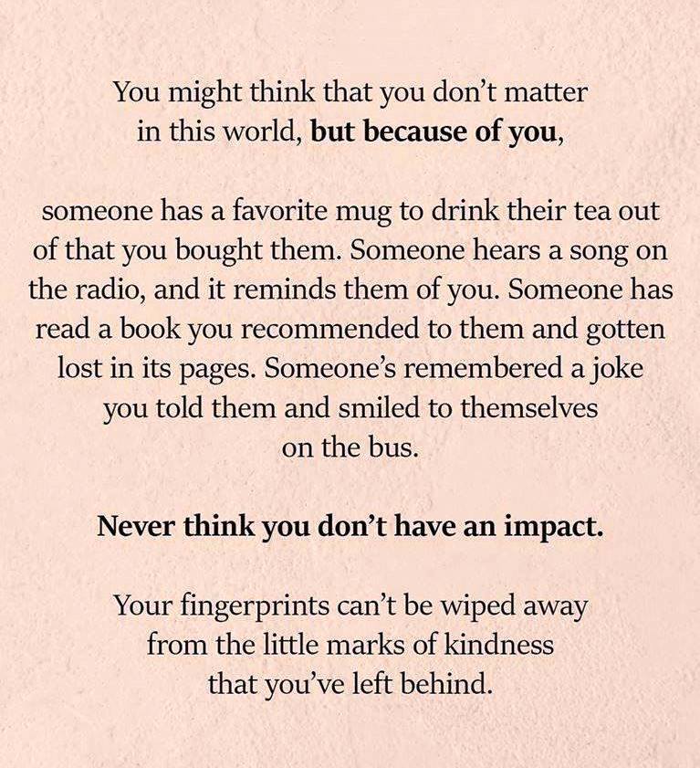 I recently ran across this quote or story and it said everything I wanted it to. The little things matter! The little things are often what keep many of us going. Don’t underestimate a phone call, a check in, a text, or a card.
