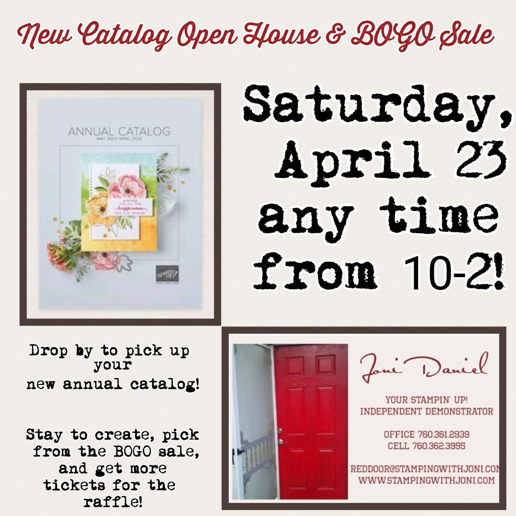 The invitation is out for the New Catalog Open House and BOGO Sale! No RSVP is needed! If you want to create please let me know that you are coming.