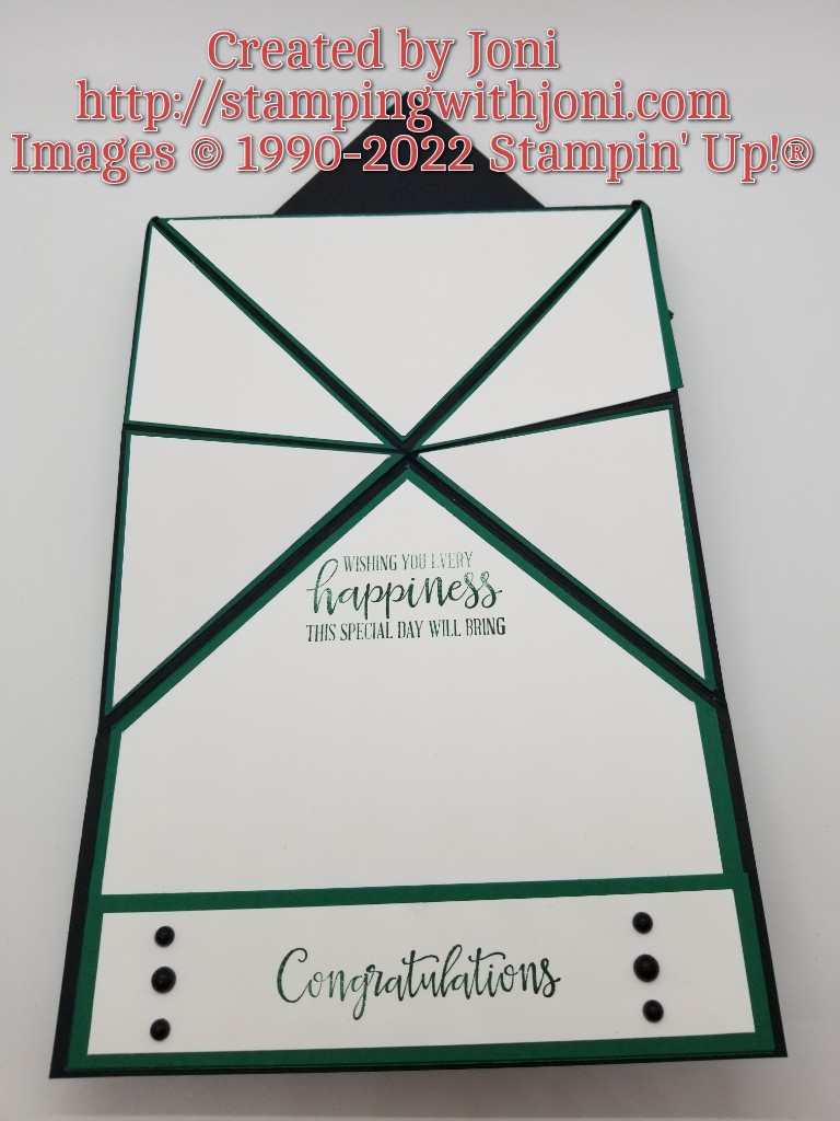- Basic Black Card Stock cut with the Paper Trimmer to 11″X5 ½” and on the 11″ side scored at 5 ½ and 8 ¼. For the rest of the cuts and scoring please follow the diagram below.