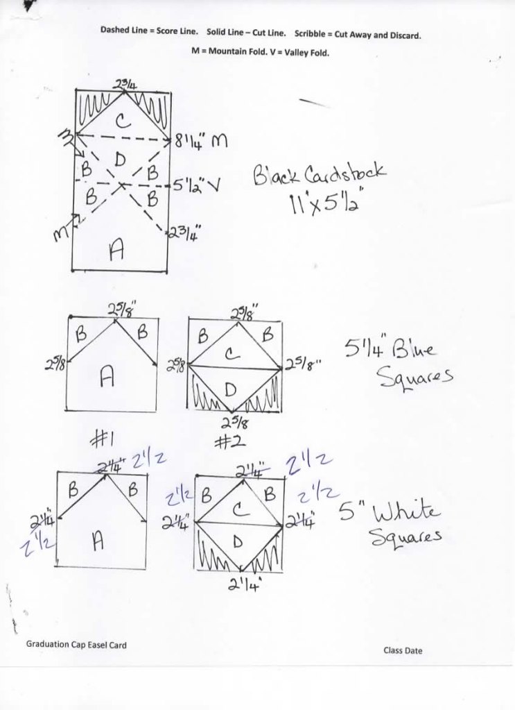 - Take a piece of Basic White Card Stock and cut two pieces to 5″ squares. Follow the diagram. You will also need one strip at 5″ X 1″.