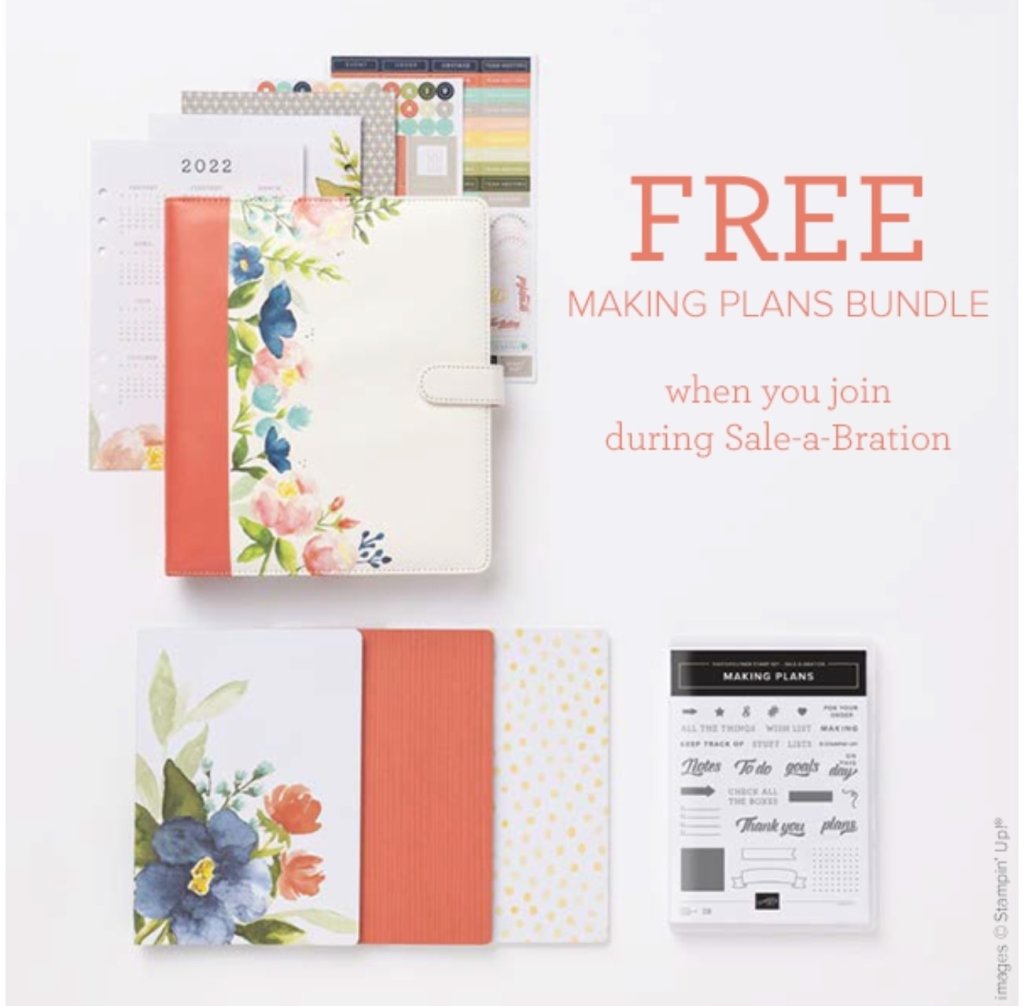 And if your wish list is way too long and you join Stampin’ Up! to get that 20% off then you get a bonus also. Not only do you get $125 of products for $99 but you also don’t pay shipping. Then you also get the Making Plans Bundle free. Even if you don’t use the planner there’s a stamp set to be had.