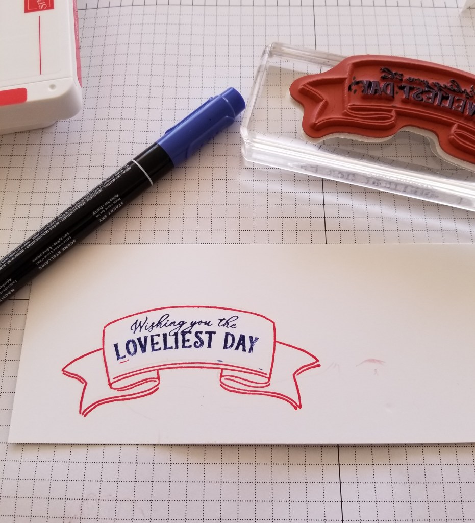 Then clean the stamp as usual and re-ink with the Starry Sky Stampin’ Write Marker. I used the brush tip.