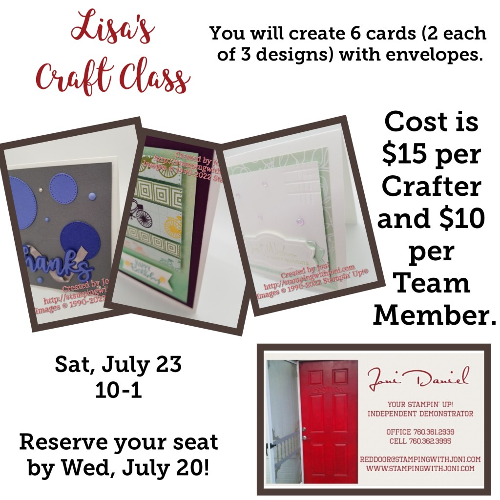 Let me know by Wednesday that you are coming to Lisa’s Craft Class! This is an in person class in Yucca Valley!