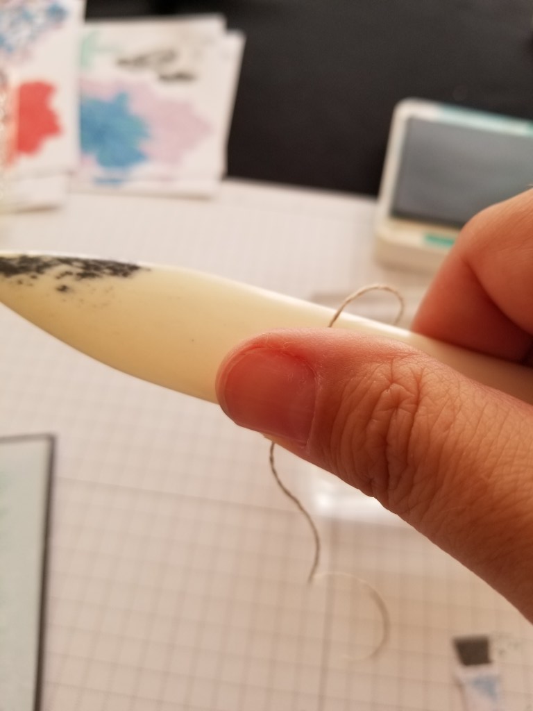 But more importantly, the Bone Folder can also get the kinks out of twine or ribbon by simply pulling it across the side of it.