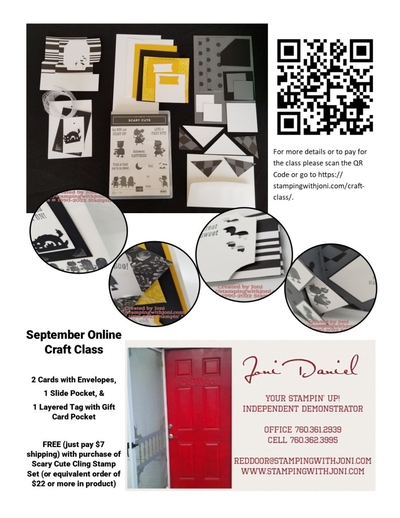 The class for September is up! Create two fun fold cards, a sliding pocket with filling, and a layered tag with gift card pocket. Let me know if you want to join in!