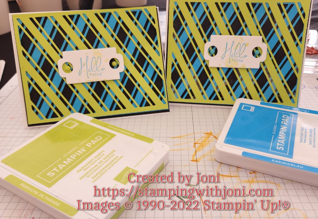 Then on the Tahitian Tide ones instead of cutting them with the Adhesive Sheet on the back I cut them on the front. That simple flip made the stripes go the other way. Then as I glued them down the stripes were going from right to left as well as left to right. I achieved my argyle look.