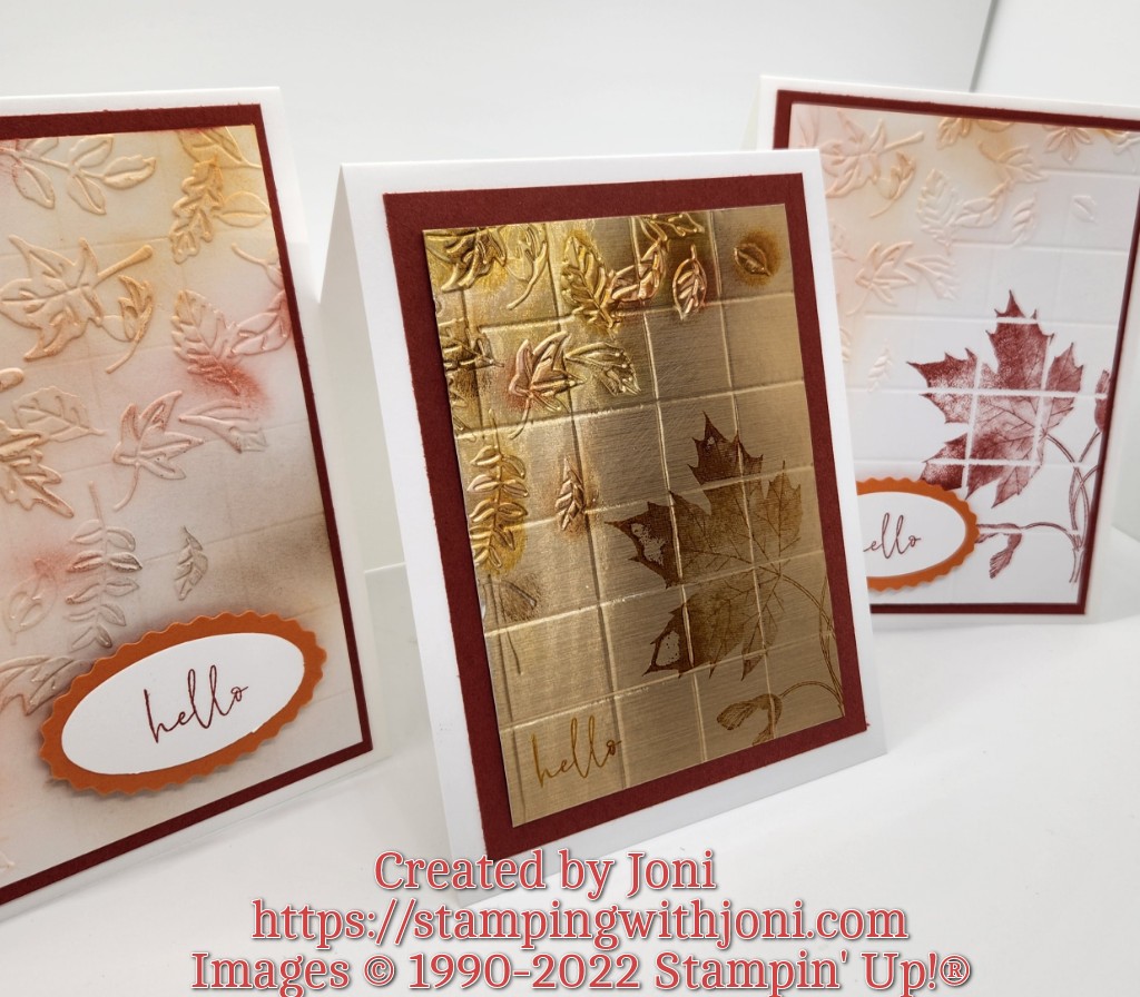 - Run this piece through the Stampin’ Cut & Emboss Machine with the Leaf Fall 3D Embossing Folder. Make sure there is quite a bit of space left on the card front.