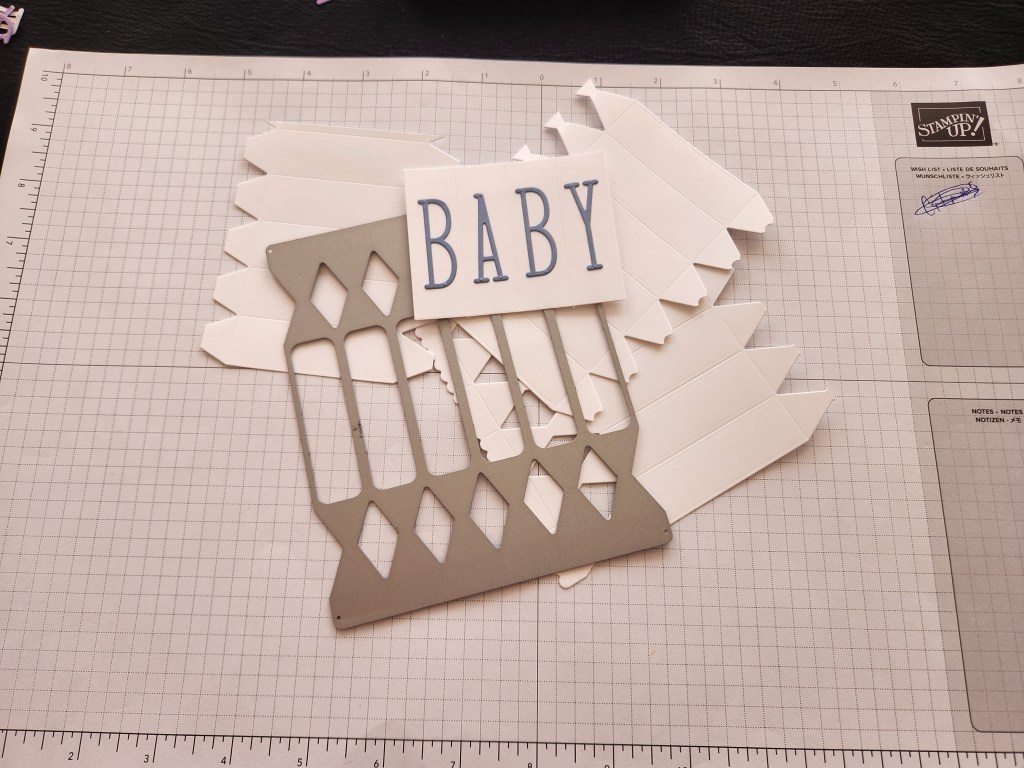 Recently I created a bunch of baby cards using the Cracker & Treat Box Dies to create a front for an accent. So I trimmed the popper piece to become the main piece on my card.