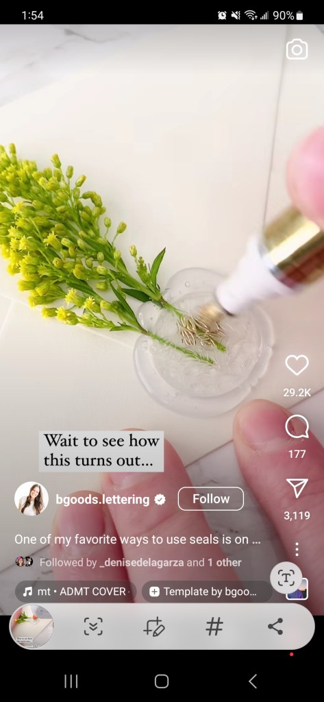 Did you know that hot glue can be used to create a seal on your envelope? Just put a bunch and then put your favorite flower or stamp in the pile of glue. Yes, I said stamp. Just be prepared with a tweezer in case it gets “stuck” in the glue.