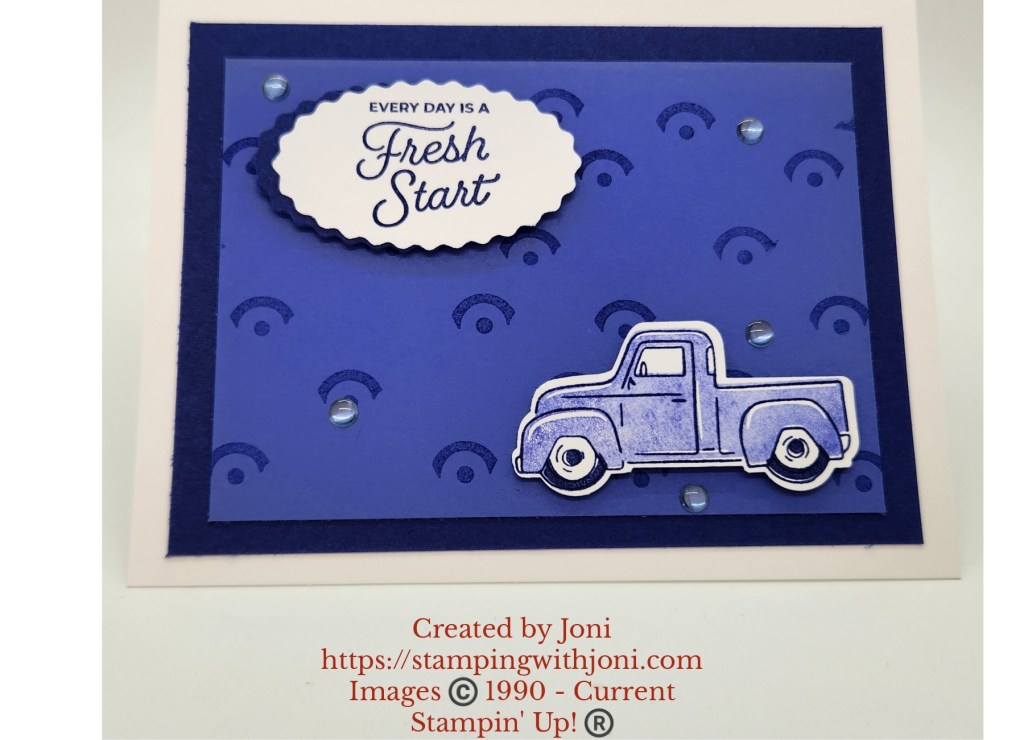 The Trucking Along Bundle is a cute and versatile set with punch that can be used for holidays and all around. I have also figured out how to use some of the spare parts for a background. Take a look!