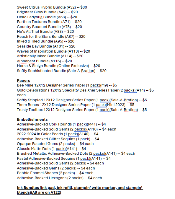 Below is the list for you Cathy!