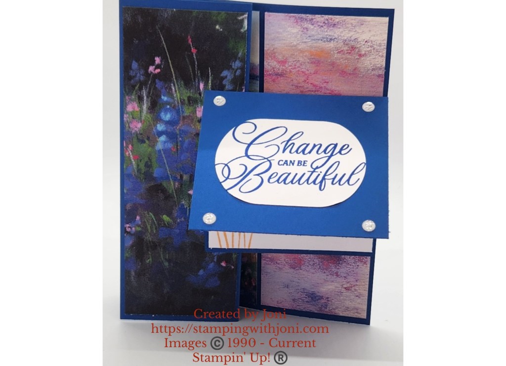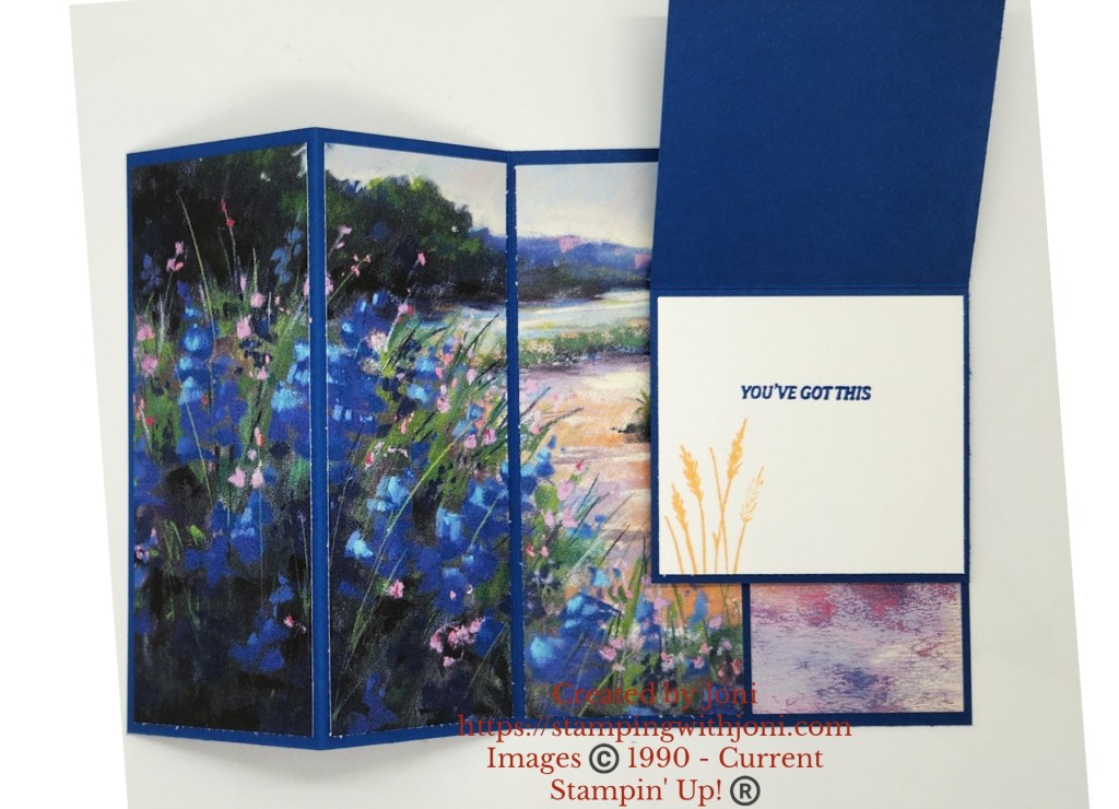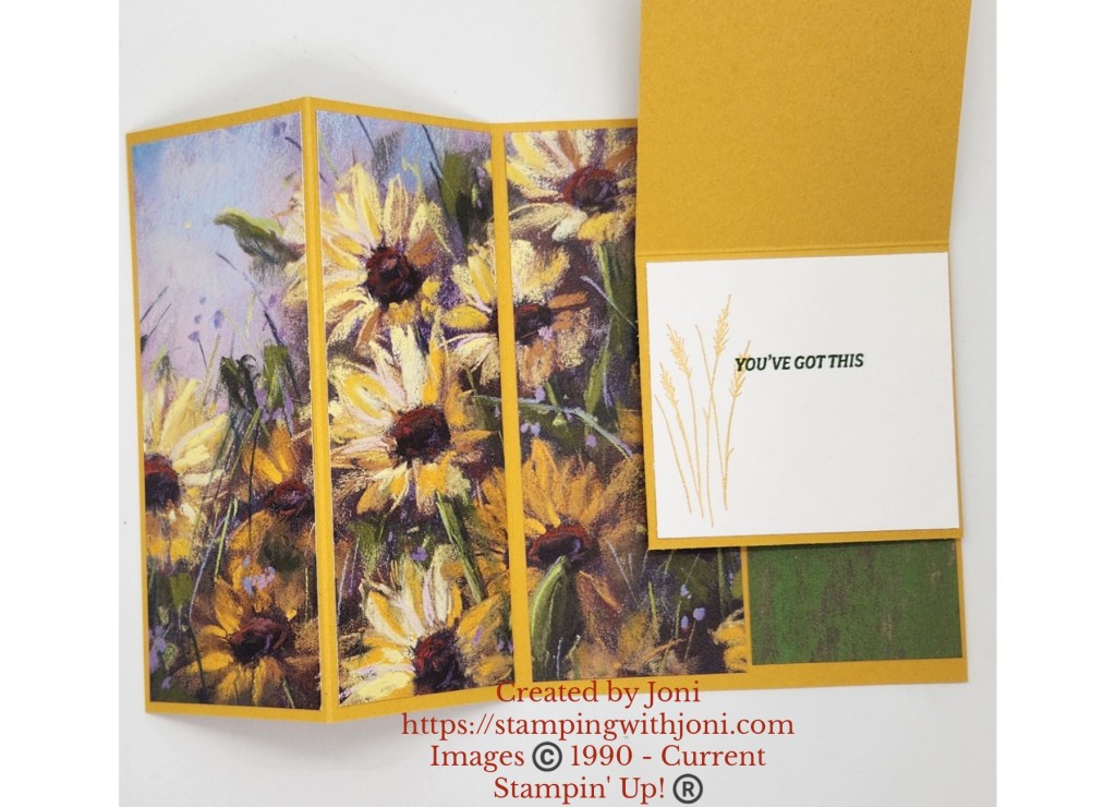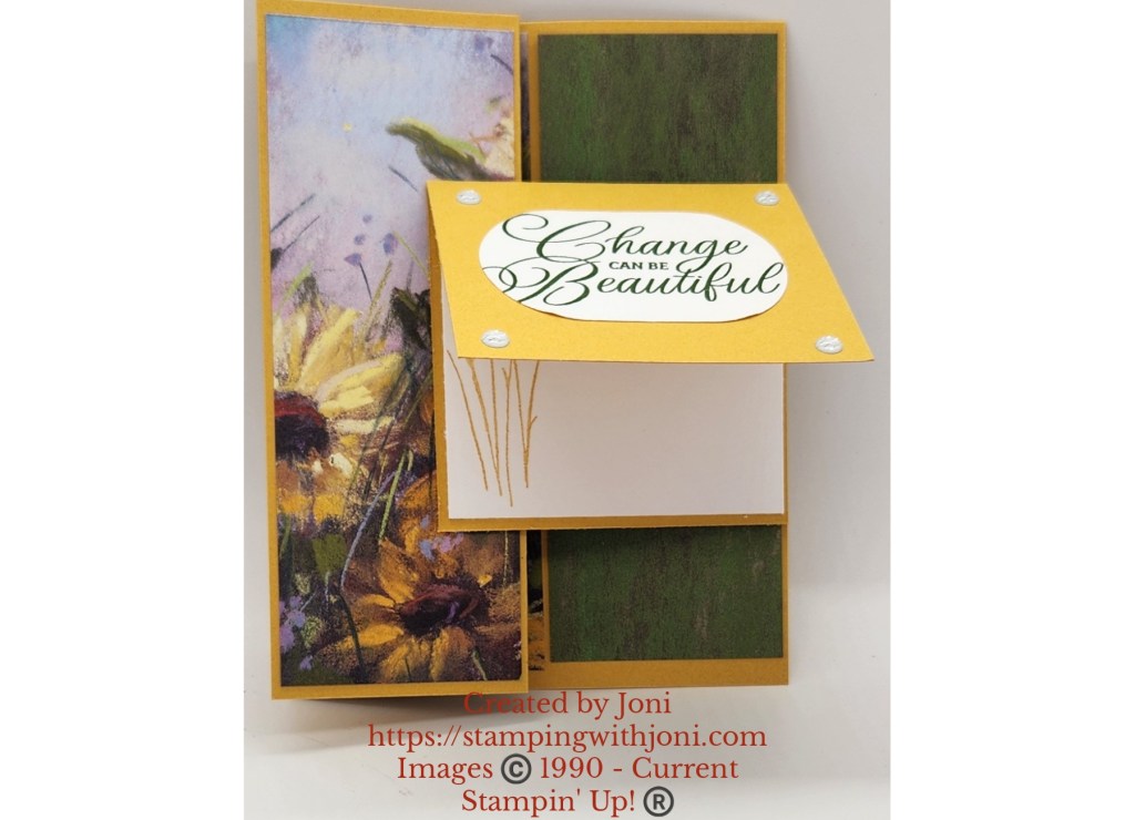 These cards are so elegant with their z folds that highlights these gorgeous papers (Splendid Autumn and Meandering Meadows). On top of these fun folds that highlights the paper so well, there are mini cards to write a quick note.