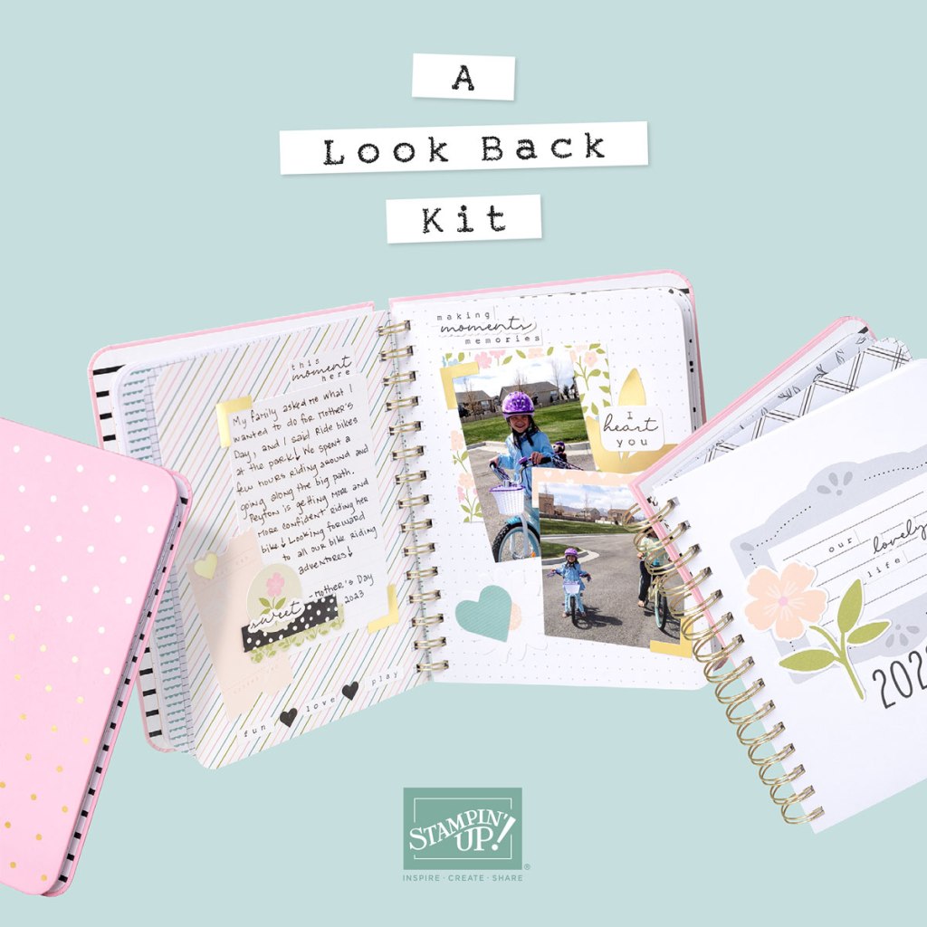 A Look Back Kit makes one spiral-bound notebook full of memories! You have 30 double-sided pages to decorate and keep your photos in. Normally this kit is $25 but it is on sale for $22.50 for this month (as well as all of the other kits).
