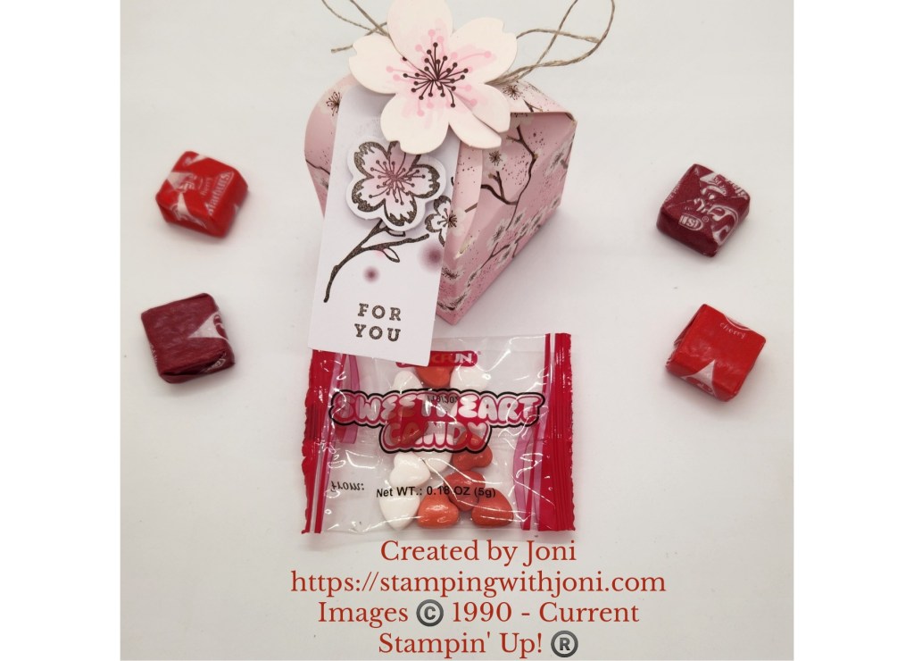 Cherry Blossom Favors with starburst and candy-coated heart candies inside.