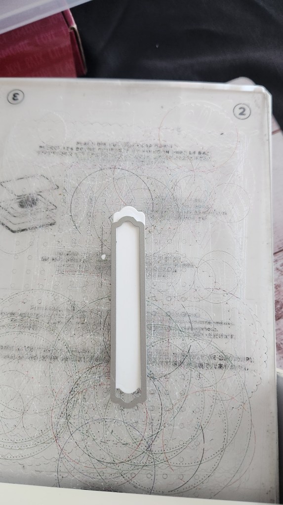 To extend the die or make a piece longer simply cut your desired piece the same (or just barely smaller) width or height. Then slip the one end up and over the end of the die so it doesn’t get cut. After doing the first side then slip the uncut side through to the desired length leaving the other side up. This will allow the piece to be a longer, customized length.
