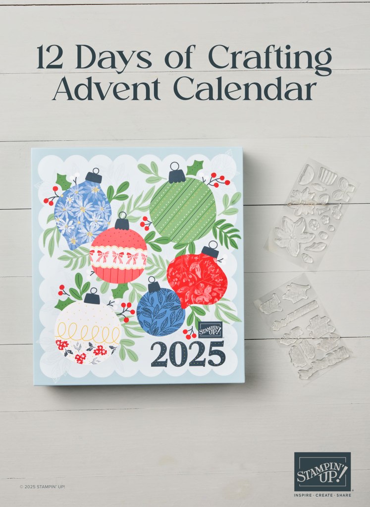 And, lastly, the Advent Calendar. Since we’re getting closer to Christmas, I figured I would talk about this now. The 12 Days of Crafting Advent Calendar is $99. It comes with a 24-piece stamp set as well as 12 brand new products not seen anywhere else. To order simply type in advent and it will come up. Here are a few photos to help.