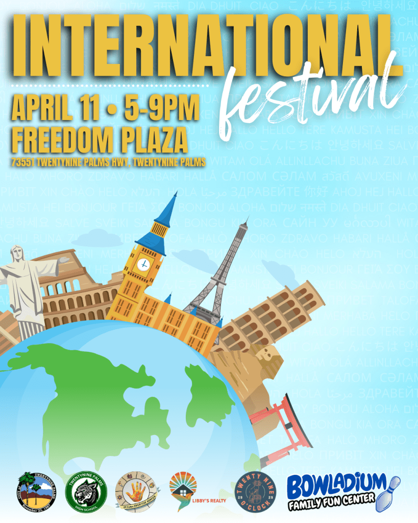 Here are the events for this week’s Farmers’ Markets in 29 Palms on Thursday and Saturday! Please note that this week there is also an International Festival on Saturday evening as well as a fair at the 29 Palms Art Gallery on Sunday!