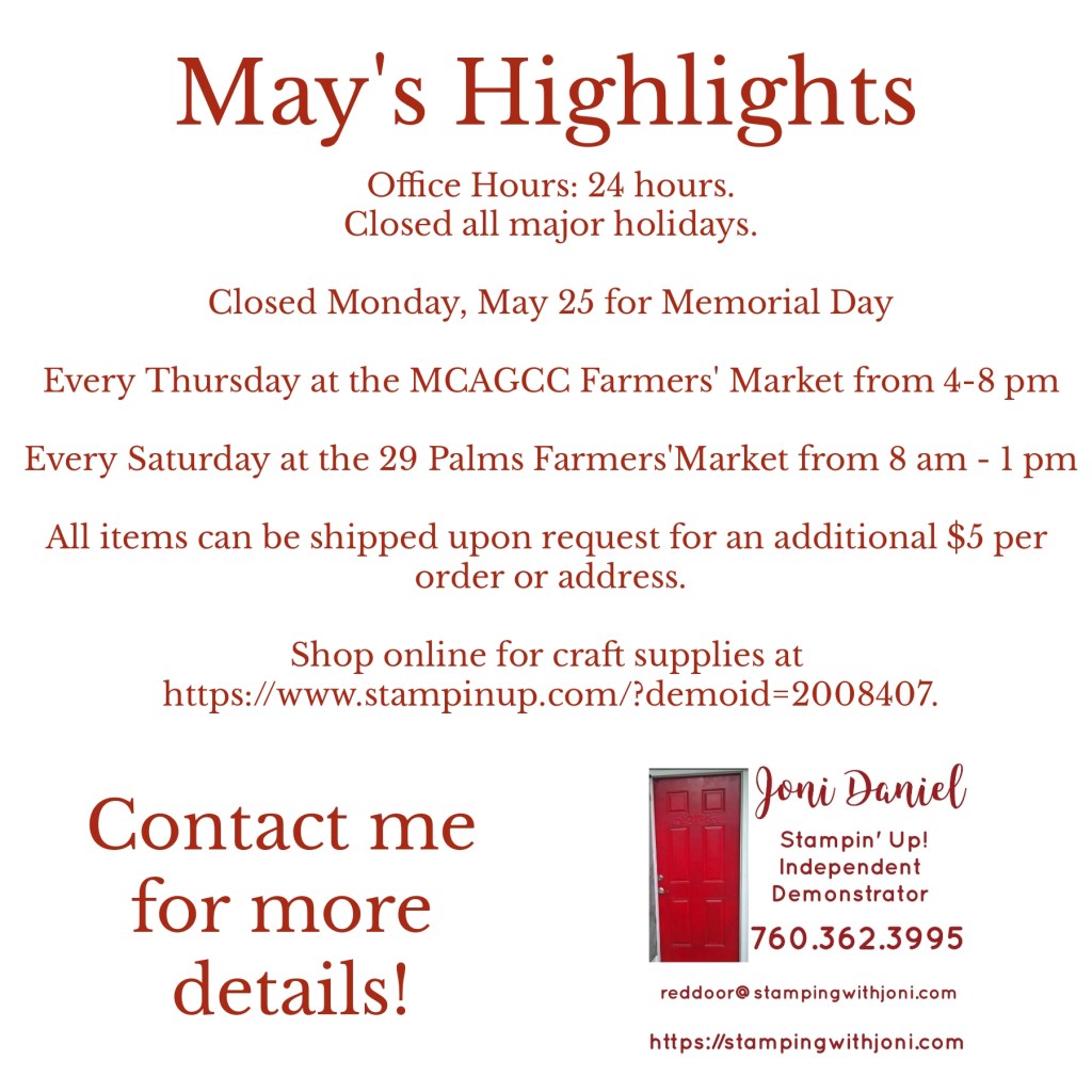 Please enjoy the highlights and holidays for this next month! Hope to see you soon!