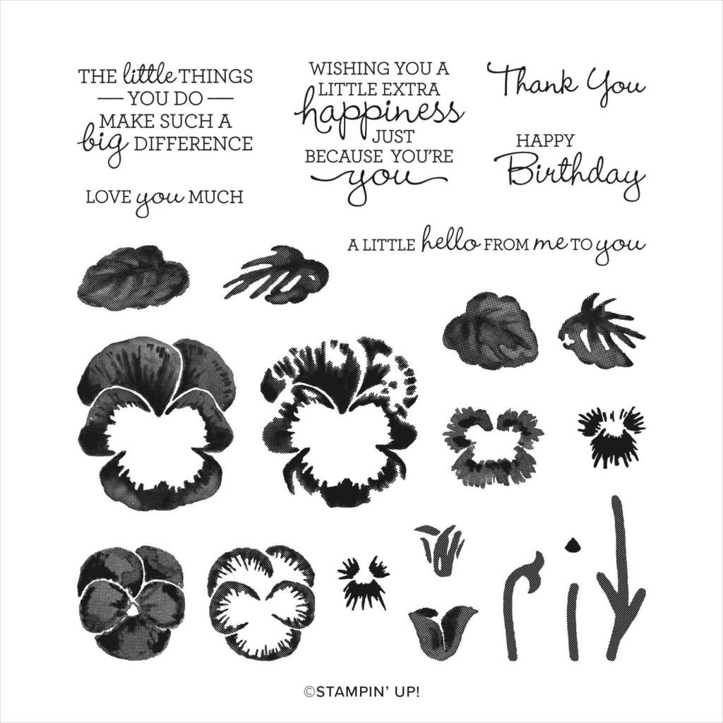 It’s Technique Tuesday! Today I want to remind you to look at all of the components of a suite or bundle. In the Pansy Petals Suite Collection you get the Pansy Patch Photopolymer Stamp Set, Pansy Dies, Pansy Petals Designer Series Paper, and the Bumblebee Trinkets. Did you know that the dies coordinate not only with the stamps but also with the paper?